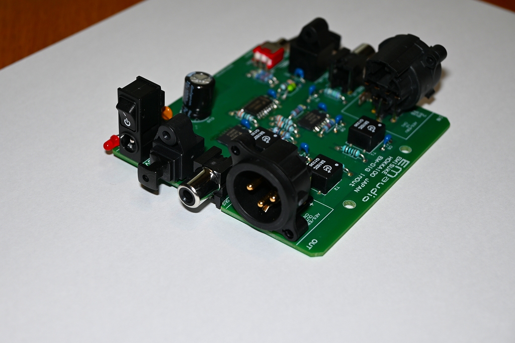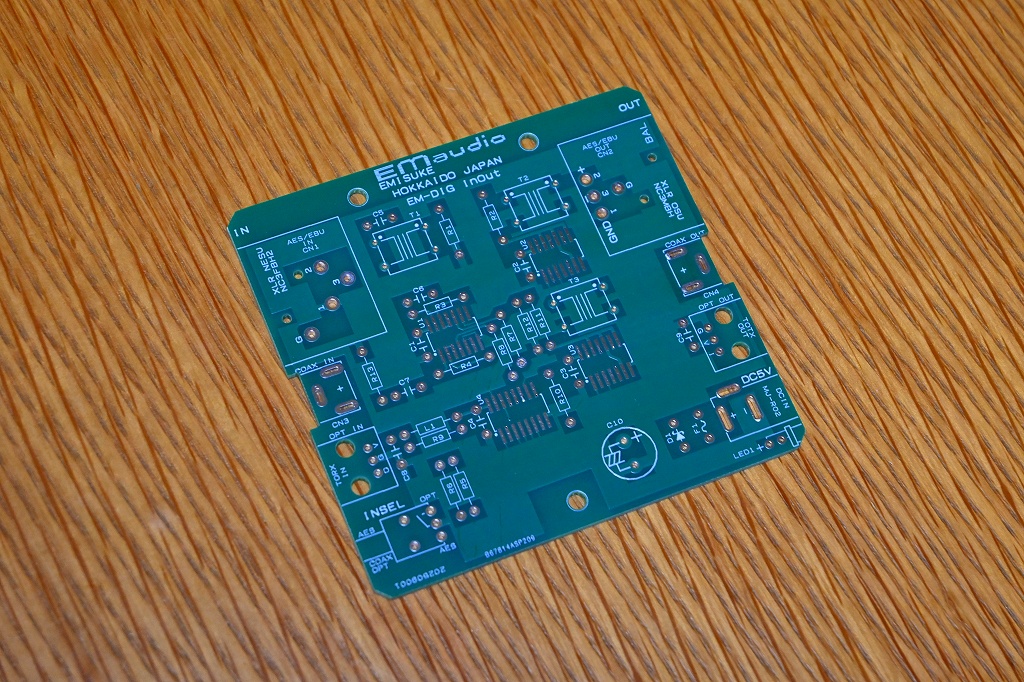 ・EM-DIG InOut 2025/09~ デジタルオーディオ信号の入出力基板です。 デジタルオーデイオの一般的な入出力コネクターは、OPT(光)、COAX(同軸)、AES/EBU(バランス)です。 OPT⇔COAX変換機は、アマゾンで買えますが、AES/EBU対応品は高価です。 本機は、OPT、COAX、AES/EBUの3入力の内1つを選択し、OPT、COAX、AES/EBUの3つ同時に出力する品です。 COAX、AES/EBUには、パルストランスを使用しています。 AES/EBU、COAXの入出力は192K対応です。 OPTの入出力は96Kとなります。 回路図 部品表 基板実装図 参考接続図 制作案内 ![]() ![]() ![]() ・EM-DIG InOut 基板のみ 価格 3,500円 ・EM-DIG InOut 基板+実装部品 価格 8,500円 注文メール件名には、「EM-DIG InOut 部品セット配布希望」と記載願います。 |